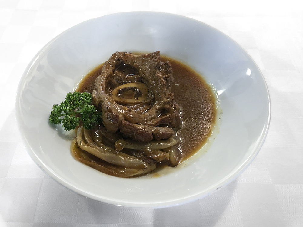 Brochet ou volaille ou viande du jour avec pomme de terre sautée au beurre.